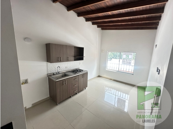 1 alcoba con closet, cocina integral, piso en porcelanato, sala , ventanal, zona de ropas, 1 baño cabinado, parqueadero para moto.